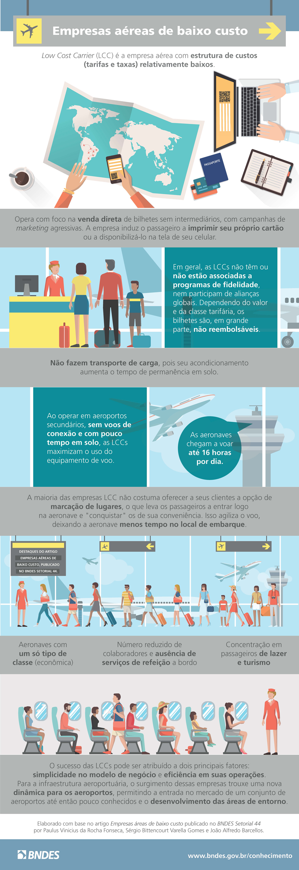 Confira no infográfico as principais características das chamadas empresas aéreas de baixo custo. Modelo de negócios que surgiu há mais de três décadas, com a criação da Southwest Airlines nos Estados Unidos e, mesmo com as mudanças e adaptações necessárias a cada mercado e ambiente concorrencial, mantém o foco: a busca constante pelo menor custo operacional.