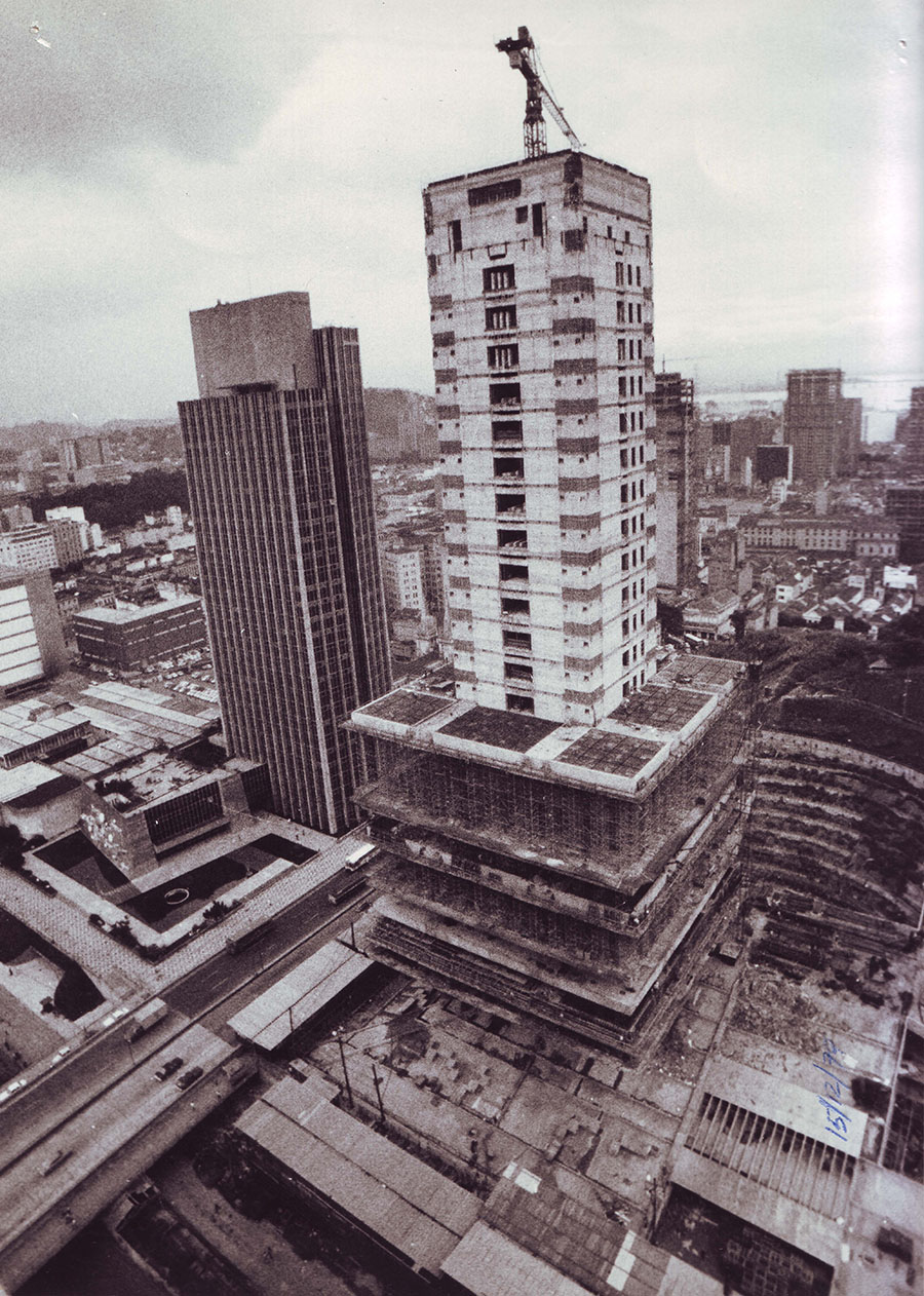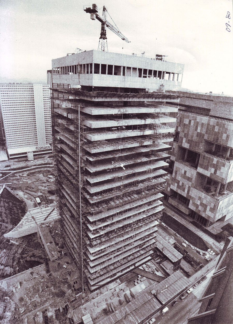 Com a necessidade de agilizar a obra, a equipe trabalhou simultaneamente nos subsolos e na torre. Em 45 dias, foram construídas a parte dos elevadores e as escadas e, em seguida, as lajes, em um sistema de revezamento de andares.